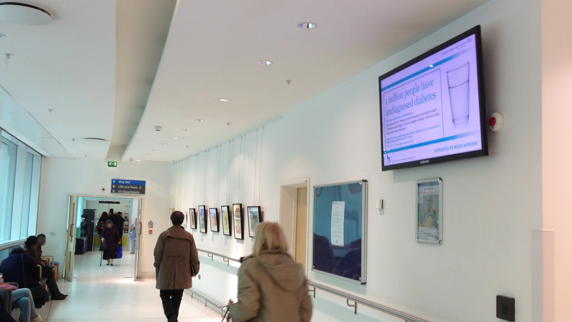 Firstly, the Trust wanted to find an efficient way to display up to date information to their patients, replacing posters and noticeboards which have become increasingly outdated. The aim was to communicate key patient information messages, positive Trust messages, waiting time information, keeping patients, visitors and staff up to date with clear, consistent and timely information.